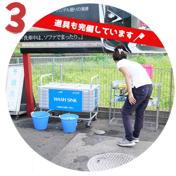 予備洗いの洗車グッズは無料でお使いいただけます。
